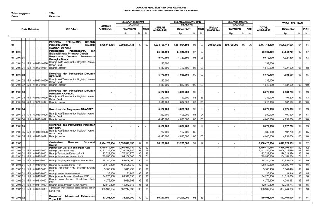 Laporan Realisasi Fisik dan Keuangan Triwulan IV