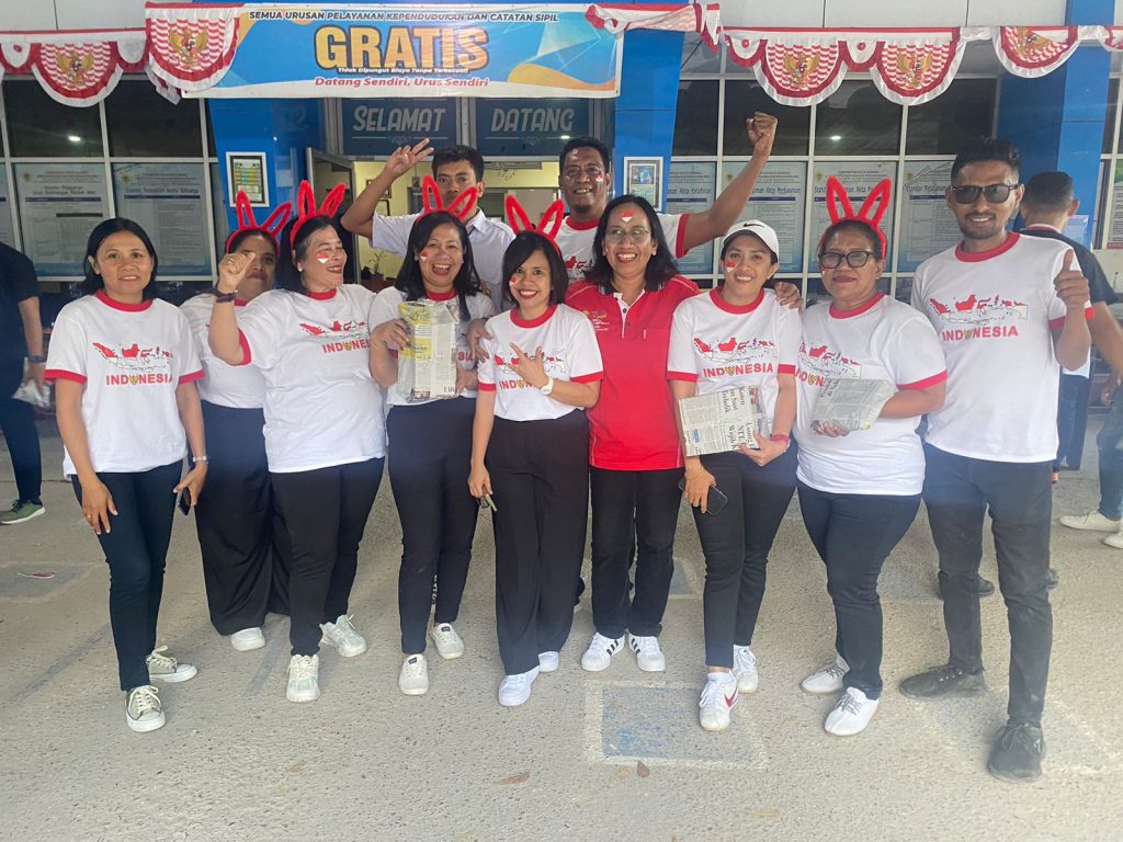 Di tengah kesibukan pelayanan di kantor dan pelayanan jemput bola  di kelurahan – kelurahan pinggiran dengan Program SEPE MANISE, dalam rangka menyambut HUT RI ke 79 Disdukcapil Kota Kupang juga menggelar berbagai lomba antar bidang. Perlombaan yang dipertandingkan adalah perlombaan khas Agustusan pada umumnya antara lain ; Tarik tambang, gigit sendok, lari sarung, tebak gerak dan ditutup dengan liance dance Ikan Naik di Pante yang lagi booming di Kota Kupang.