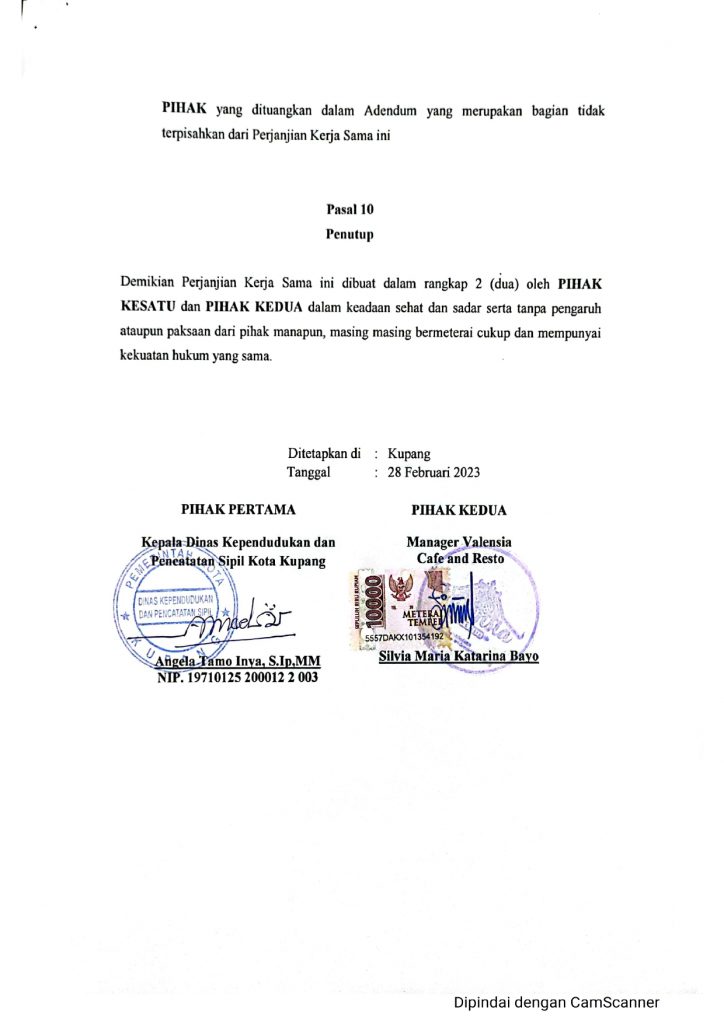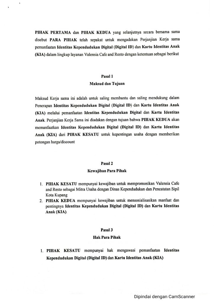 Perjanjian Kerja Sama dengan Valensia Cafe And Resto