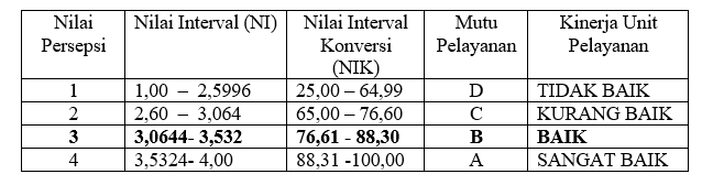 Nilai Persepsi, Nilai Interval, Nilai Interval Konversi, Mutu Pelayanan Dan Kinerja Unit Pelayanan
