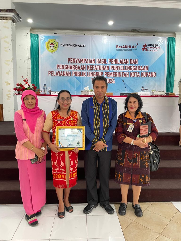 Bertempat di Aula Rumah Jabatan Walikota Kupang, Kamis 5 Desember pukul 14.00 Wita Dinas Dukcapil Kota Kupang bersama beberapa Instansi lainnya, menerima Piagam Penghargaan Nilai Kepatuhan Penyelenggaraan Pelayanan Publik dari Ombudsman RI perwakilan NTT. Hadir pada acara tersebut PJ Walikota, PLH Sekda Kota Kupang dan Ketua Ombudsman NTT, Bp. Darius Beda Daton.